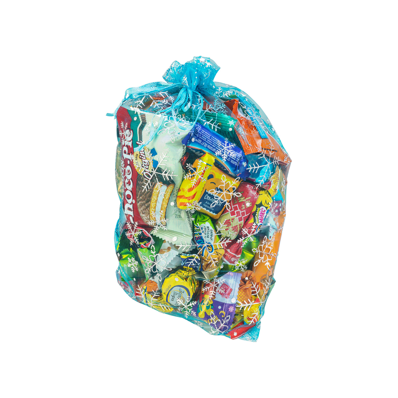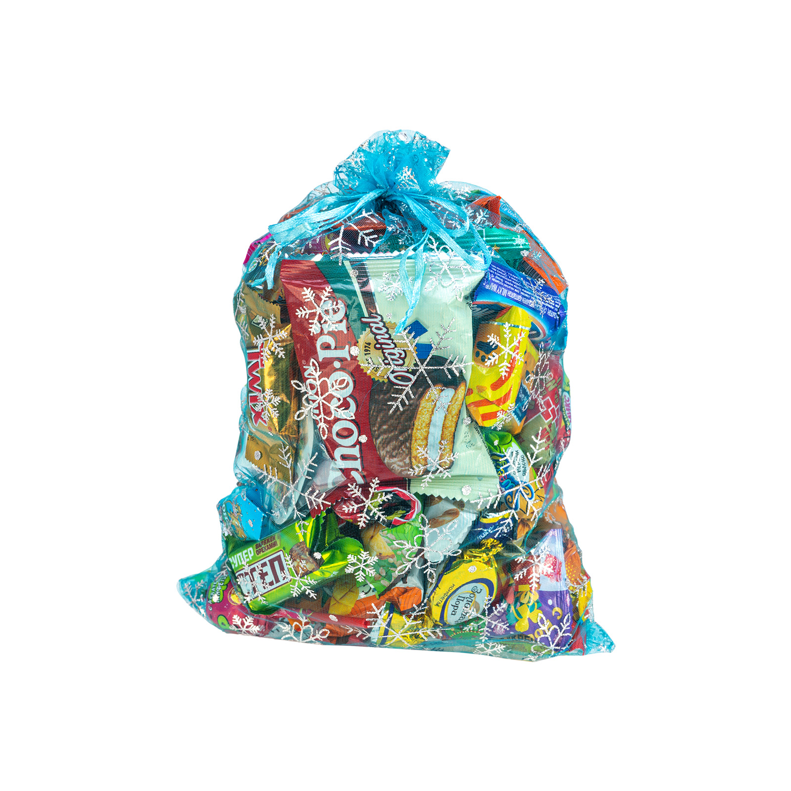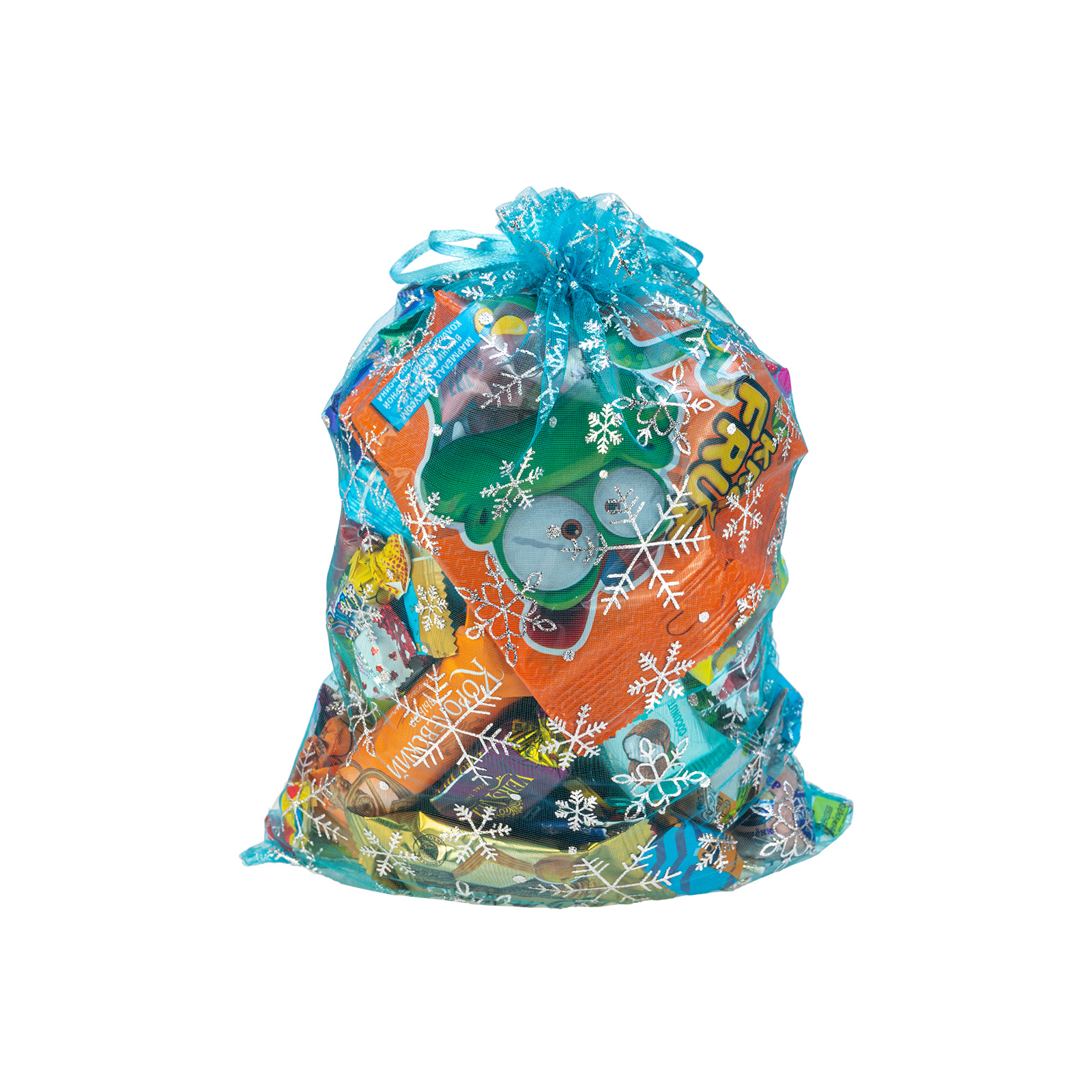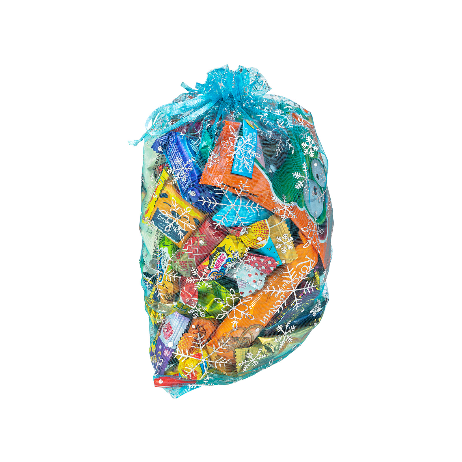 Новогодний сладкий подарок должен быть не только вкусным, но и практичным. Подарок “Мешочек снежинки” как раз полностью соответствует этим требованиям. Это килограмм вкусных и разнообразных кондитерских изделий, бережно упакованных в текстильный мешочек небесно-голубого цвета. Упаковка выполнена из качественного материала, со всех сторон на нее нанесены узоры в виде фигурных завораживающих снежинок, сверху мешочек плотно перевязан веревочкой. Данный подарочный набор прекрасно подойдет для сластены любого возраста: его можно вручить как на детском празднике, так и на корпоративе в крупной компании.